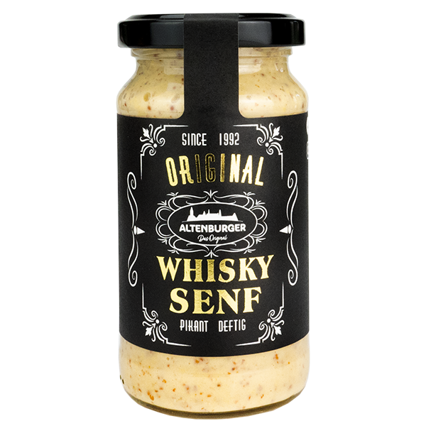 Entdecke die vollmundige Geschmacksexplosion unseres Whisky Senfs aus Altenburg, Thüringen! Unser grober, mittelscharfer Senf entfaltet seine ausgewogene und würzige Note durch die Verwendung von Blended Whisky höchster Qualität.